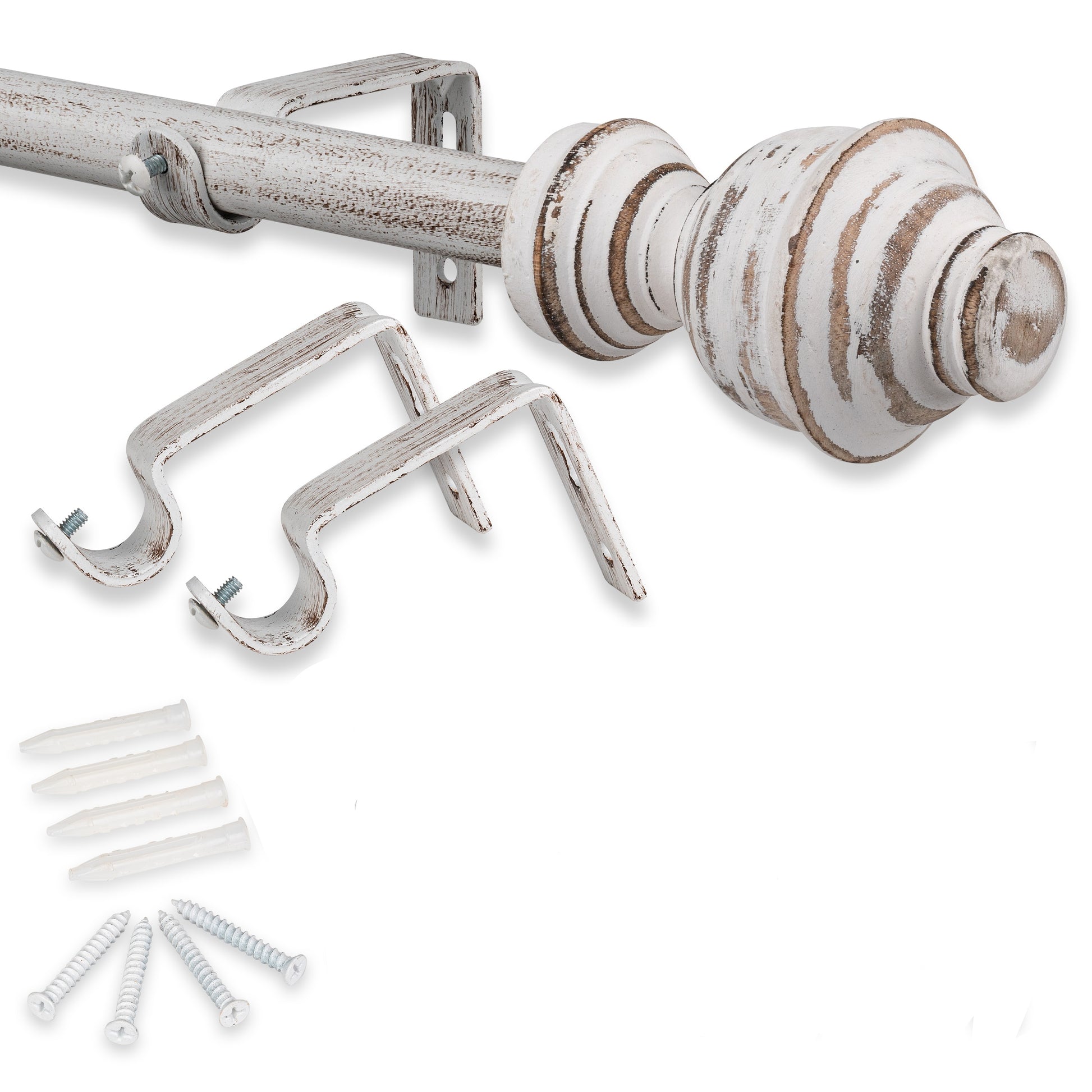 Cambridge Rustic Farmhouse Distressed White Curtain Rod Set