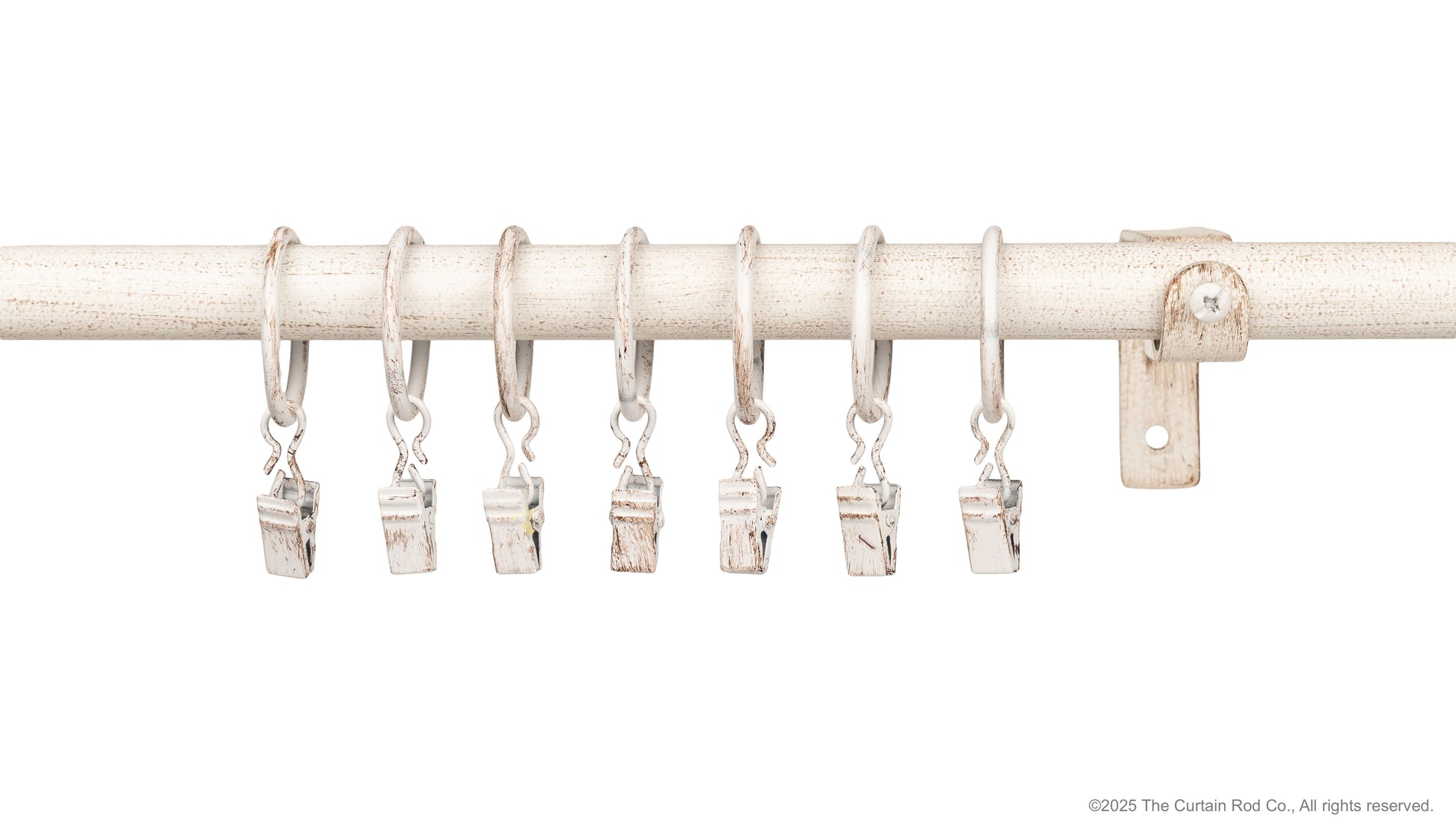 Home Decor Curtain Rods Clips Rings Distressed Ivory White Set of 7