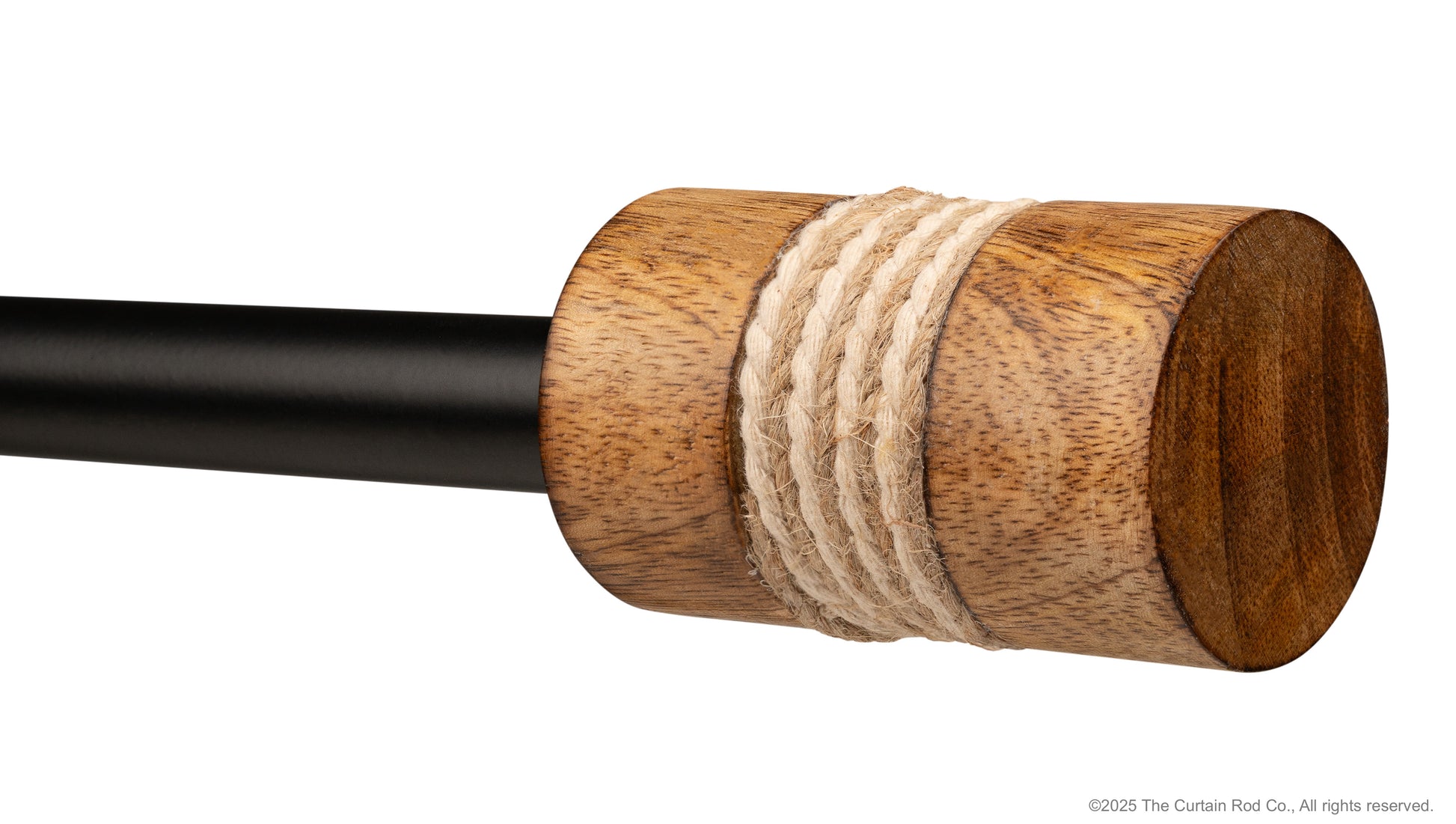Matte Black Rod with Natural Wood Finials and Natural Jute rope.