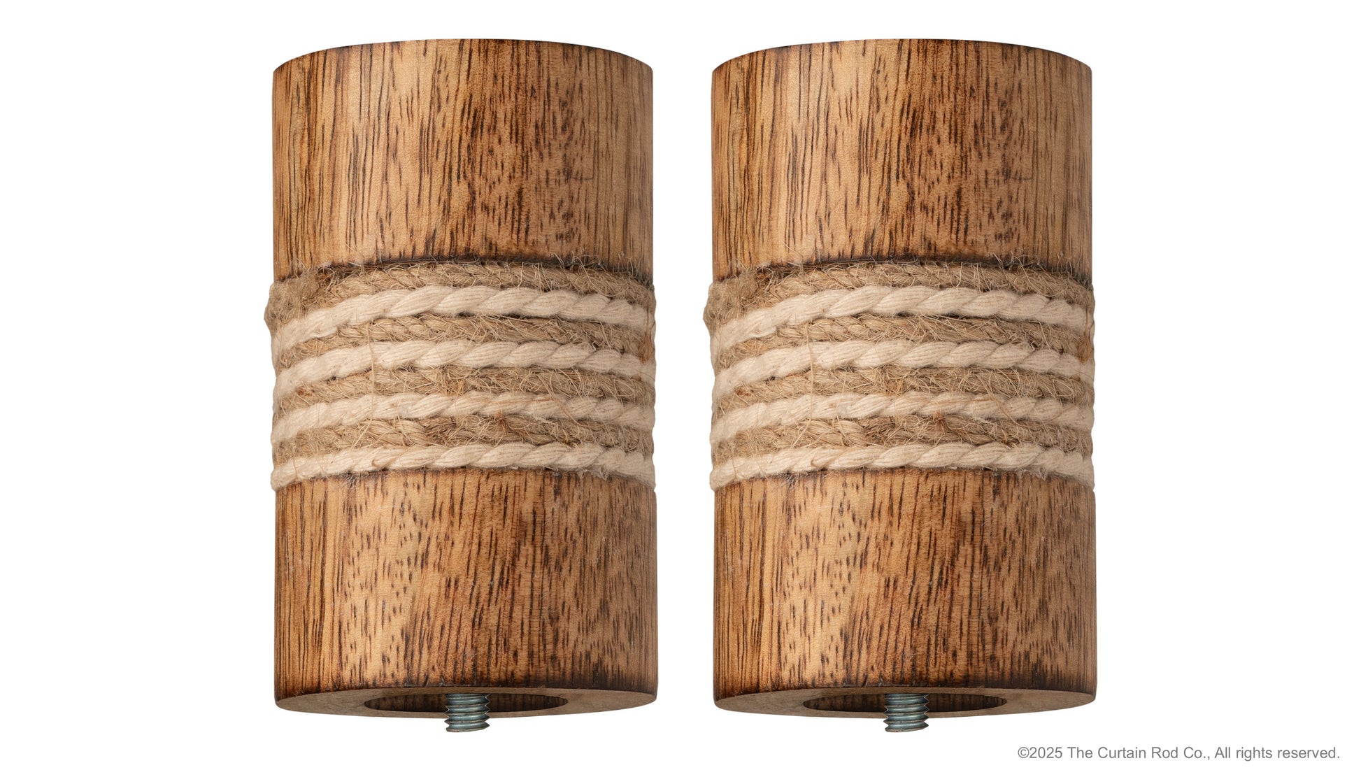 Cottage-inspired design features wood finials covered in Jute rope details.