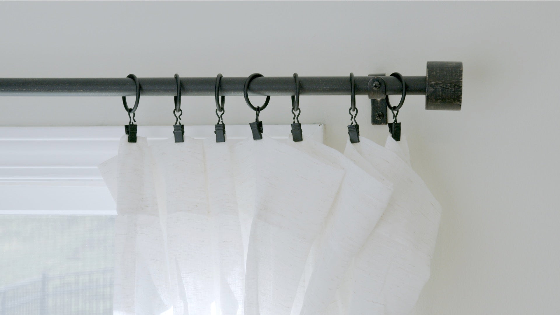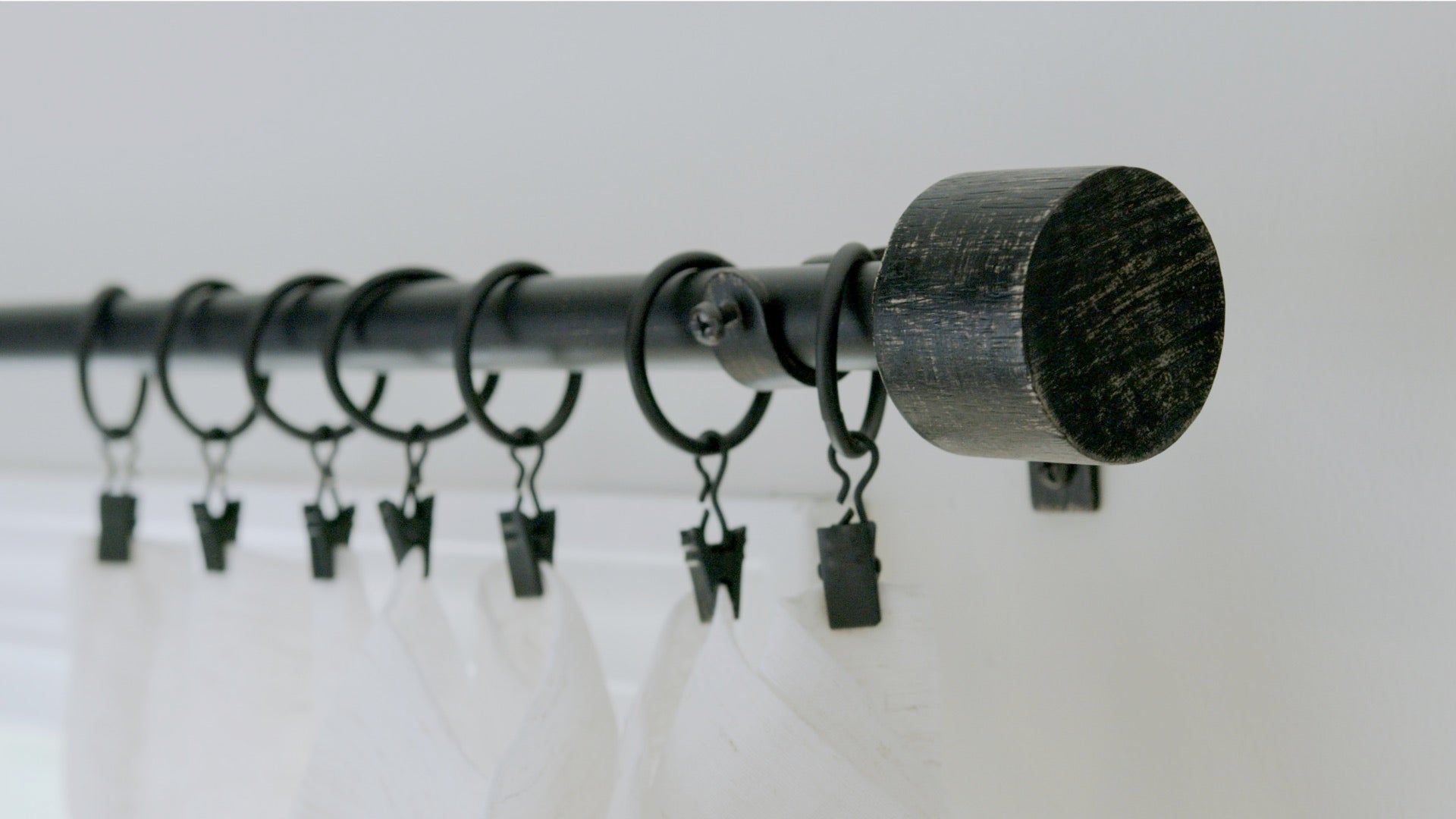 Modern End Cap Distressed Black Farmhouse Curtain Rod Set