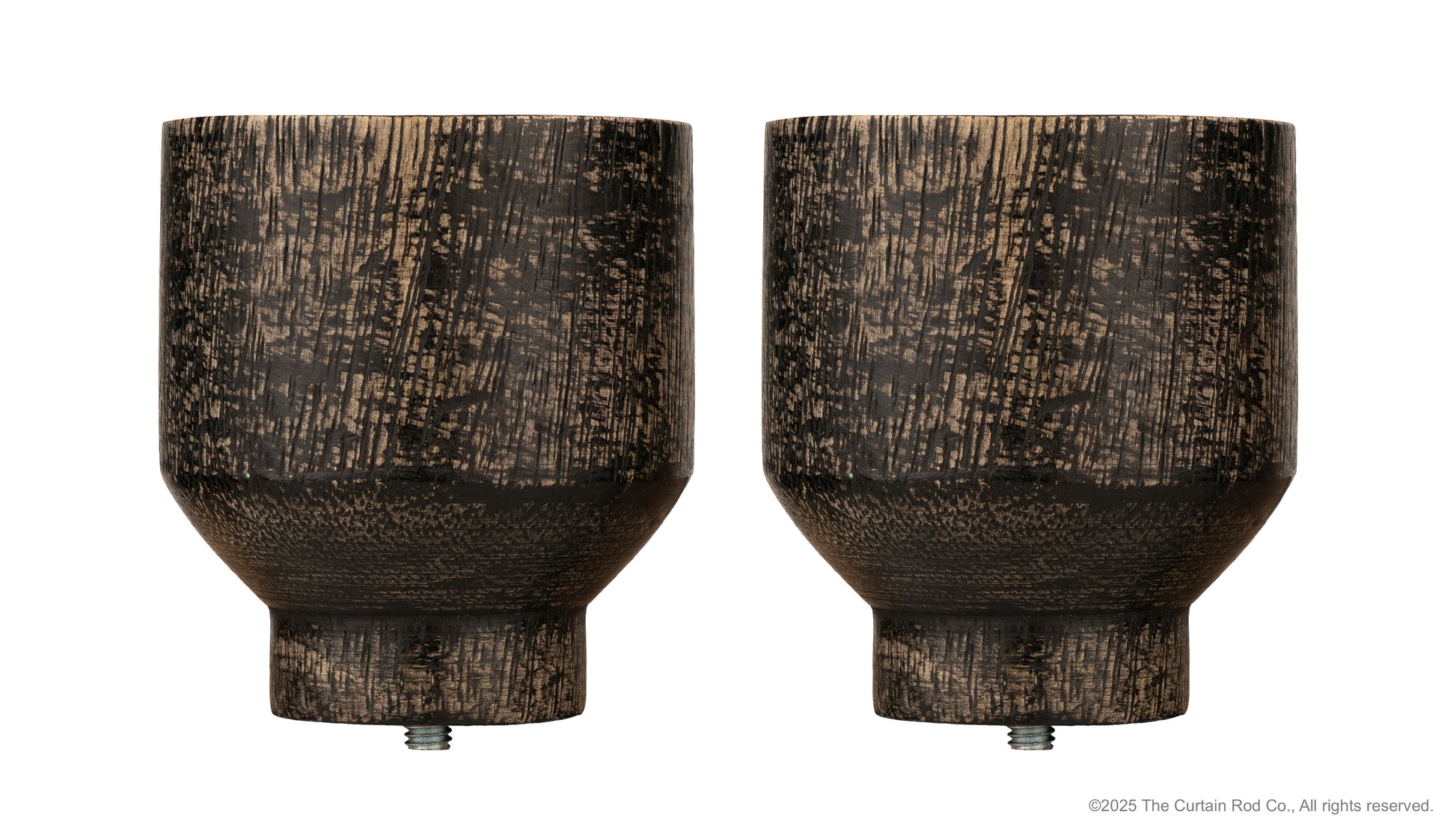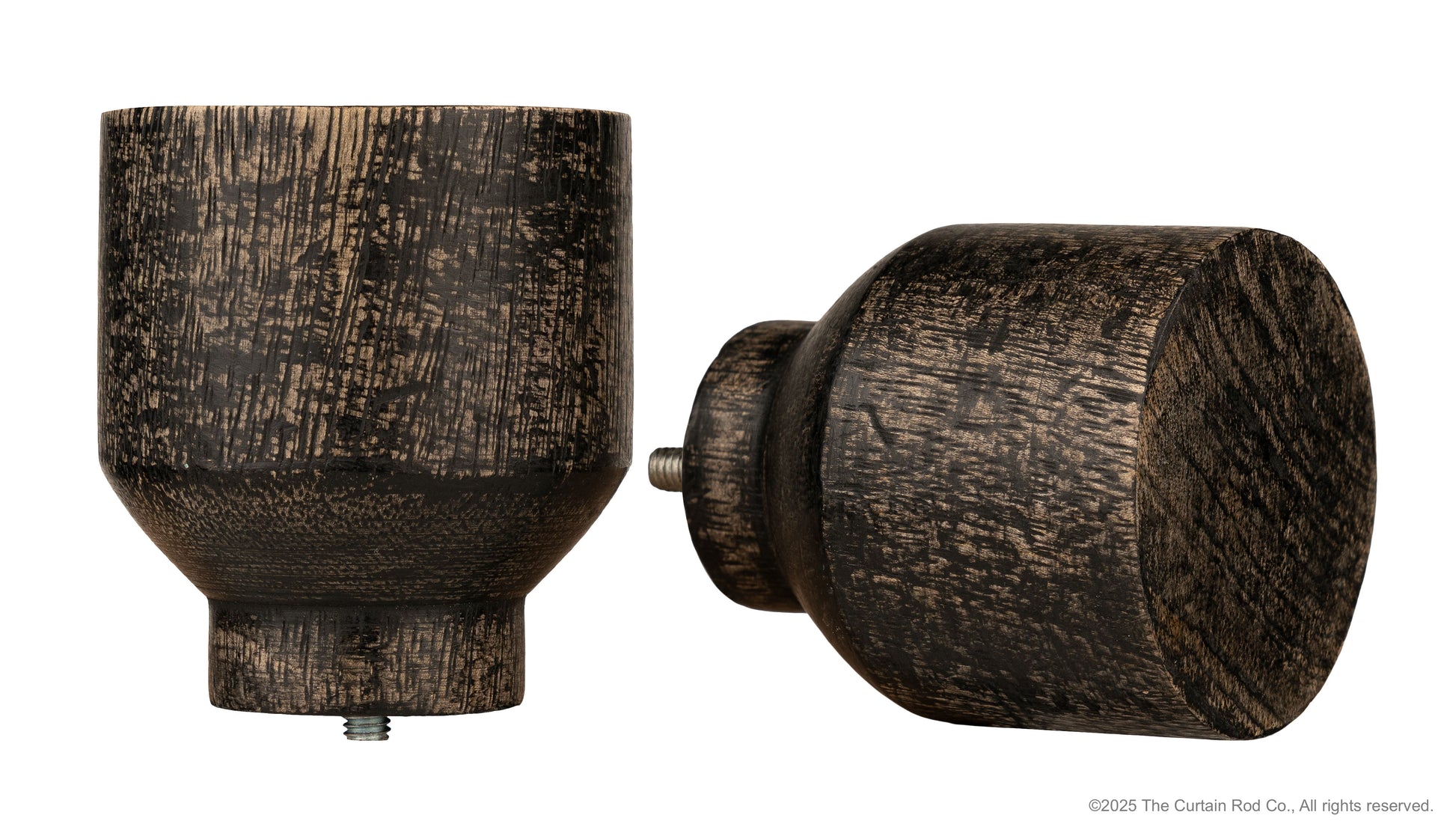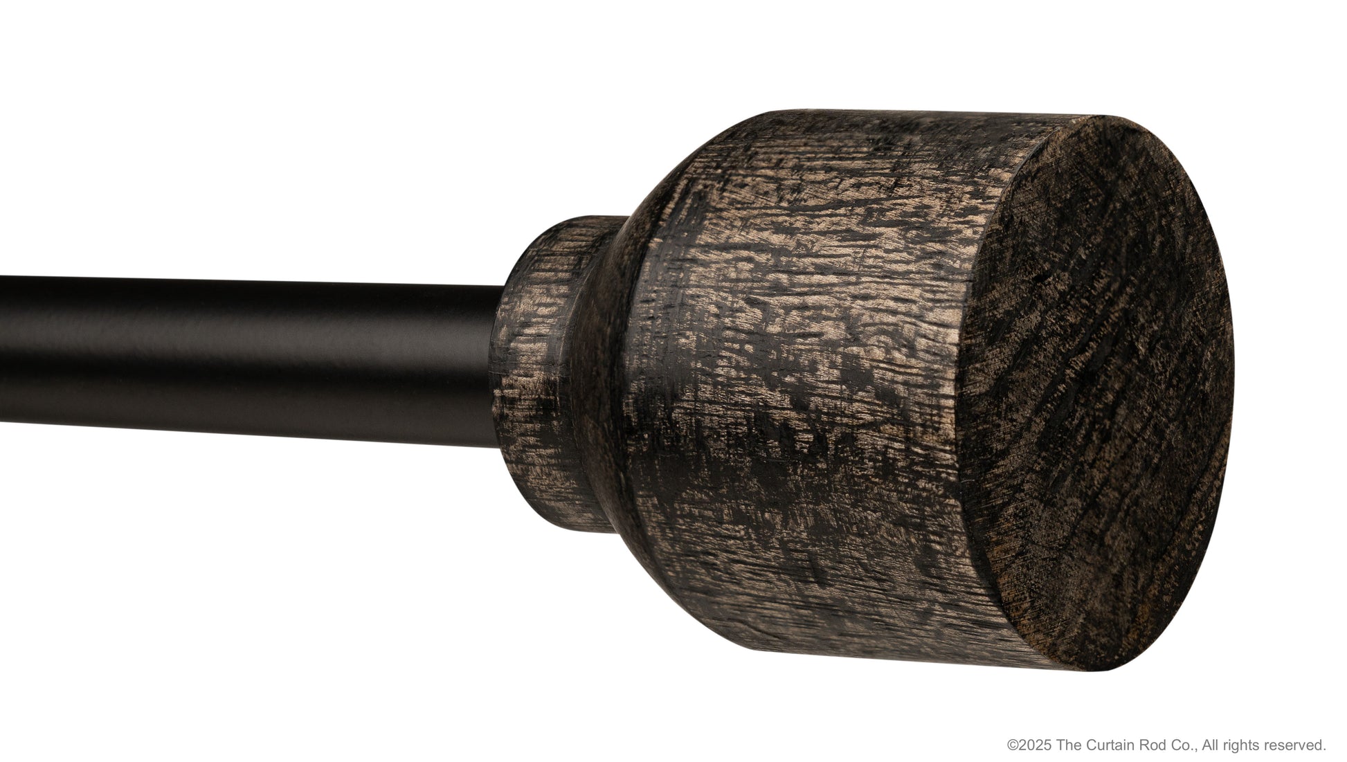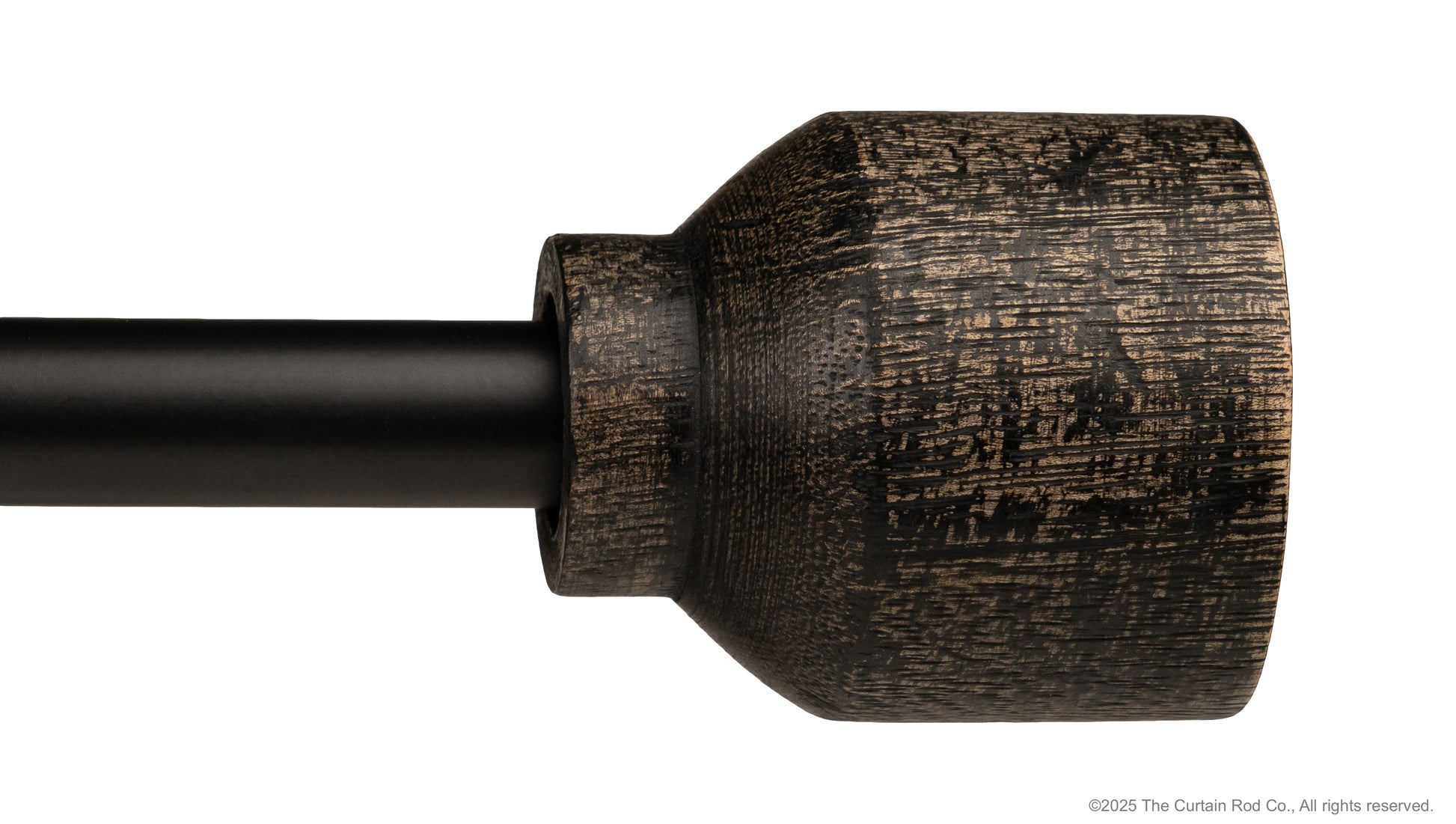 Distressed Black Metal rod finish with Matching Natural Distressed Black Wood Finials.