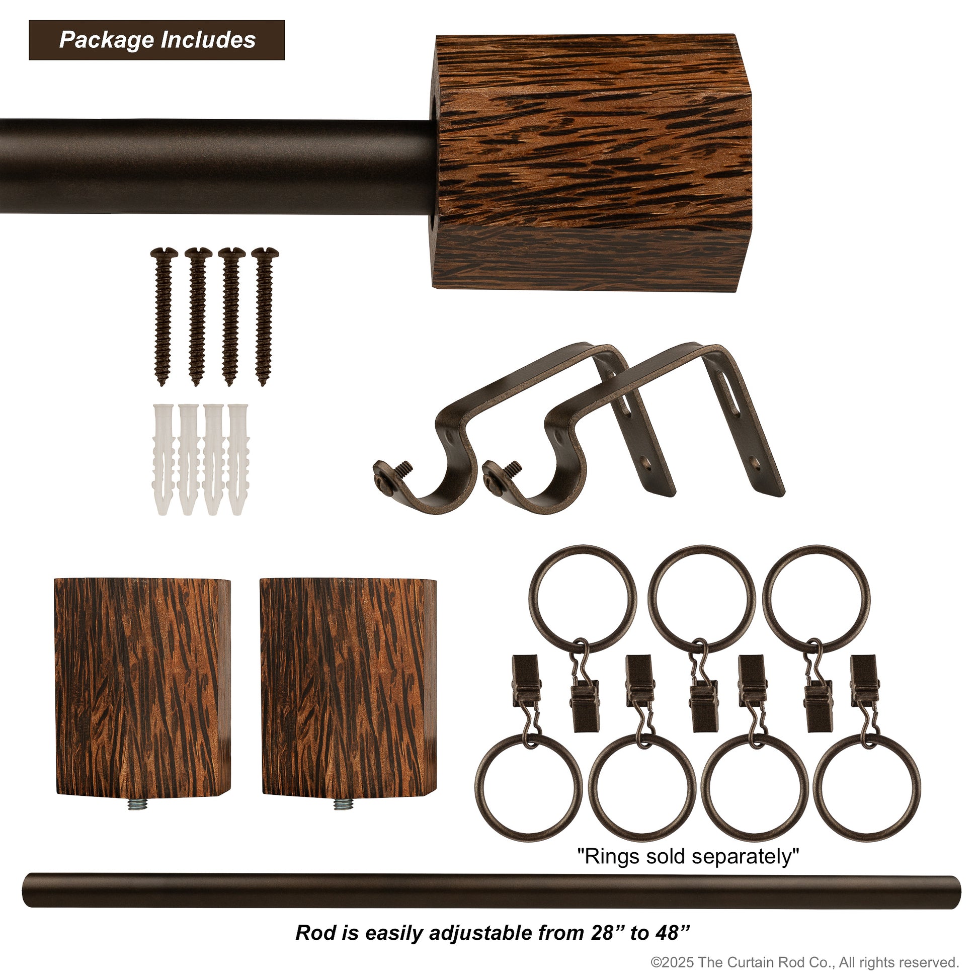 Wenge Real Wood Contempo-Modern Warm Bronze or Matte Black Curtain Rod Set
