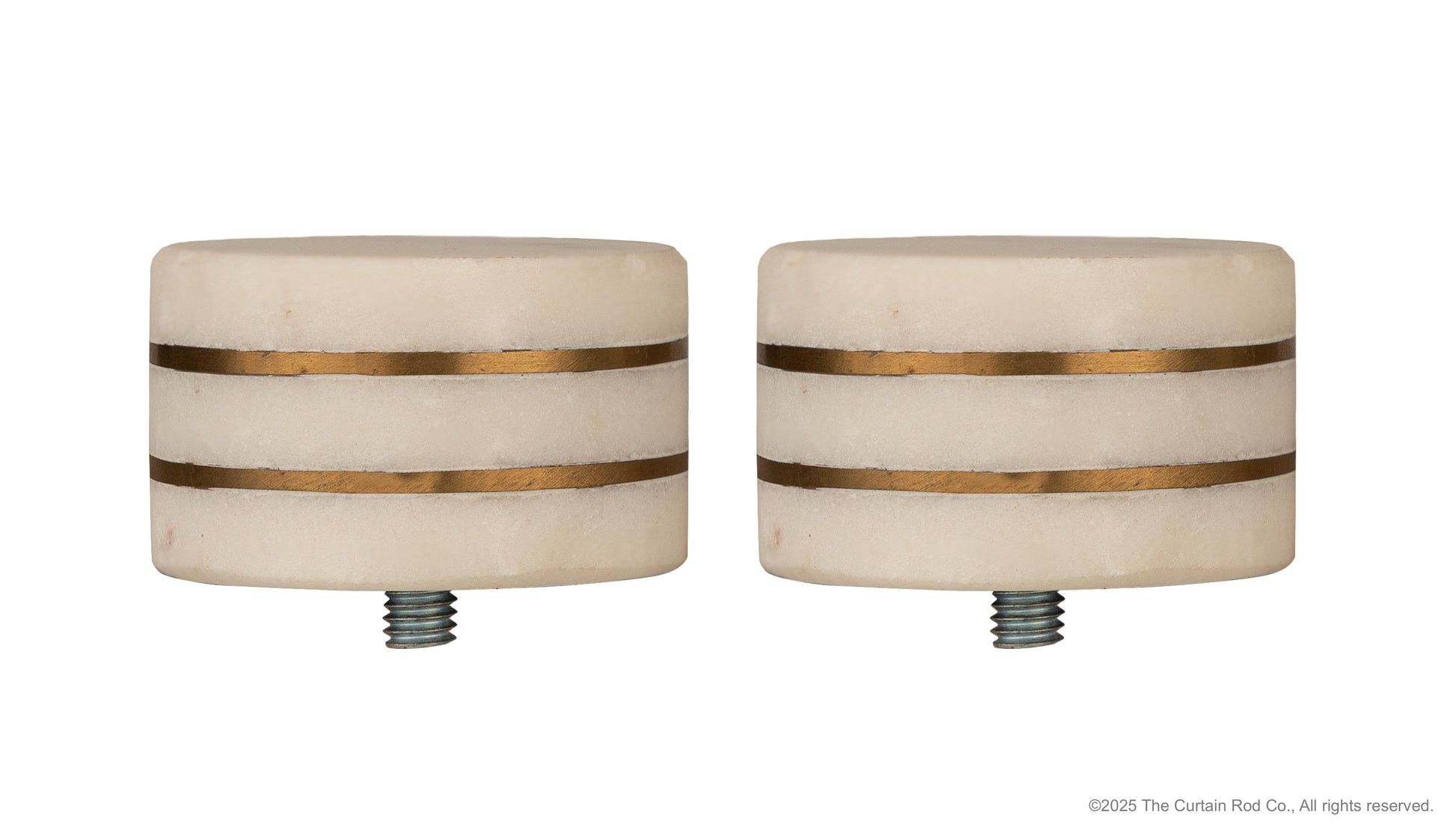 Modern White Marble & Brass Inlay End Cap Curtain Rod Set